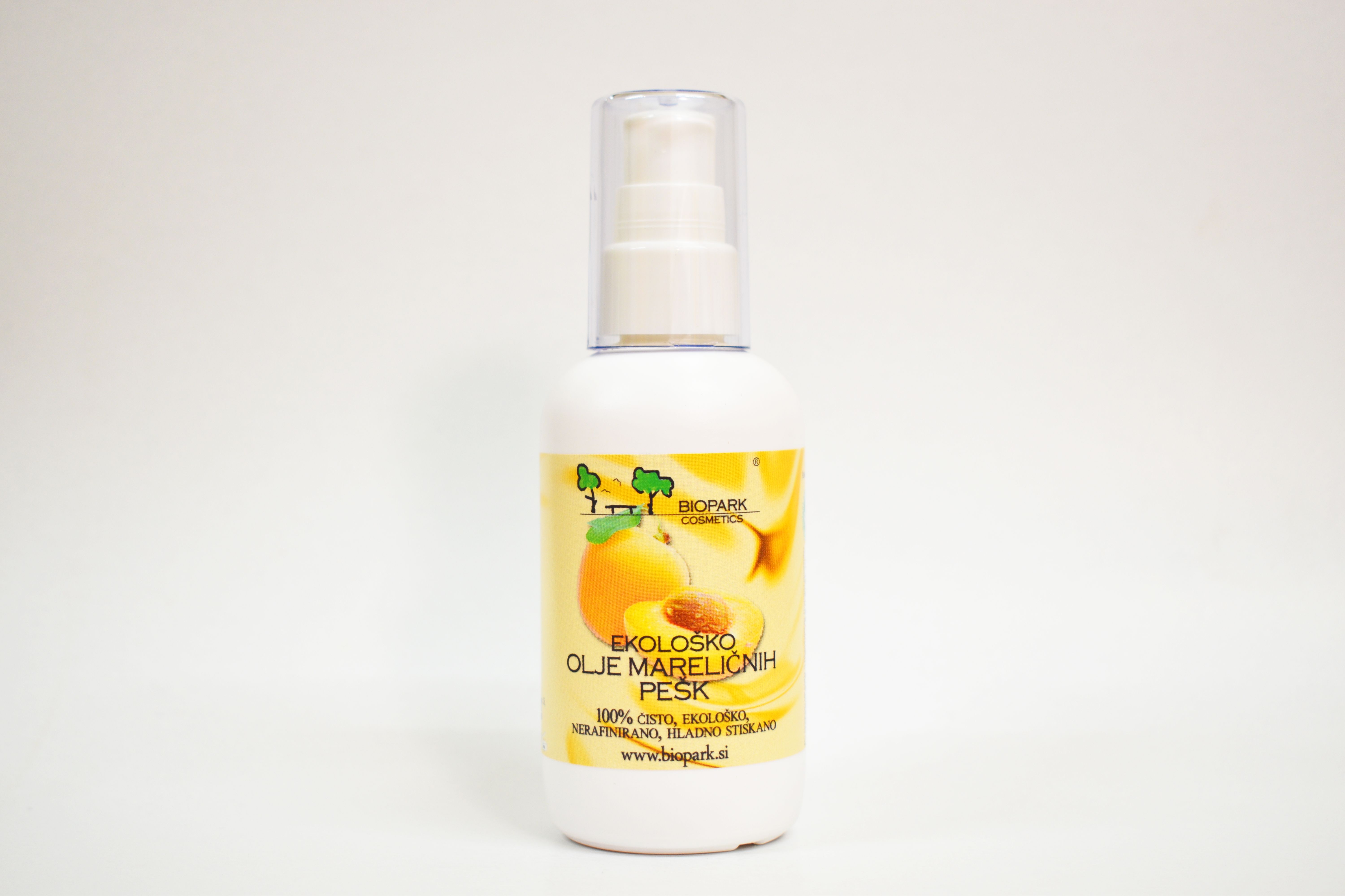 Opis: Hladno stisnjeno olje iz sredice mareličnih pešk. Je rahlo rumene barve in je brez posebnega vonja. V kožo se hitro vpije in ne pušča mastnega občutka.